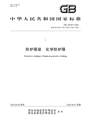 GB 24539-2025 防护服装 化学防护服 (代替 GB 24539-2021,GBT 23462-2009)