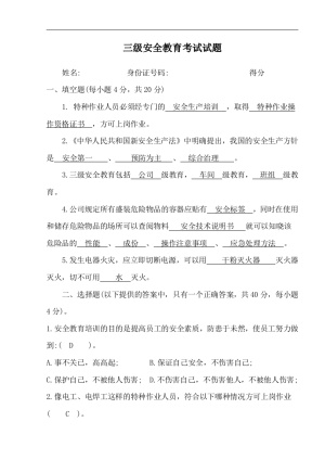 ***安全教育试题(公司级、部门级、班组级) (1)
