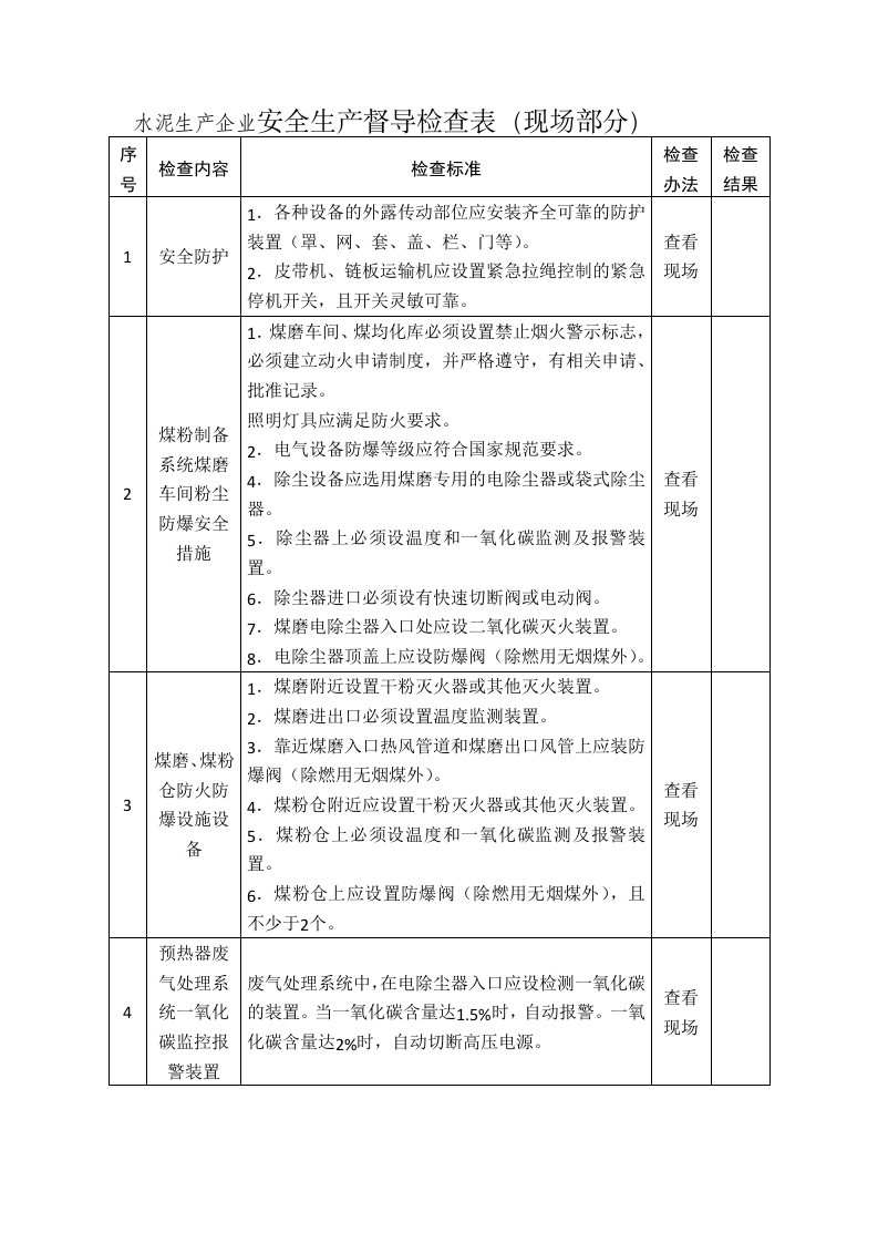 首页安全文档其他素材水泥生产企业安全生产督导检查表