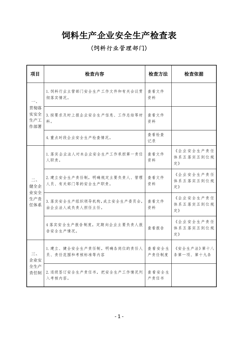 饲料生产企业安全生产检查表