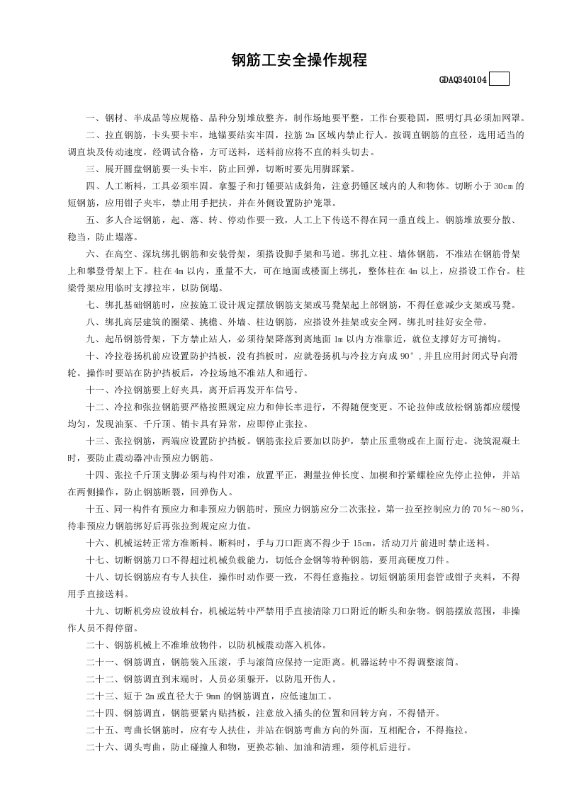 4钢筋工安全操作规程GDAQ340104