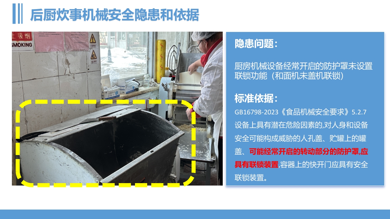 【隐患对标】厨房机械设备经常开启的防护罩未设置联锁功能(和面机未盖机联锁)