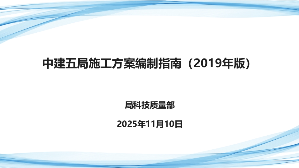 中建五局施工方案编制指南(2019年版)局科技质量部2025年11月10日课程大纲1指南编制说明模板方案解读专项方案管理工程概况◆危大工程规定住建部规定◆节点构造◆方案提纲◆集团规定◆安全验算◆内容编写◆局规定◆施工图