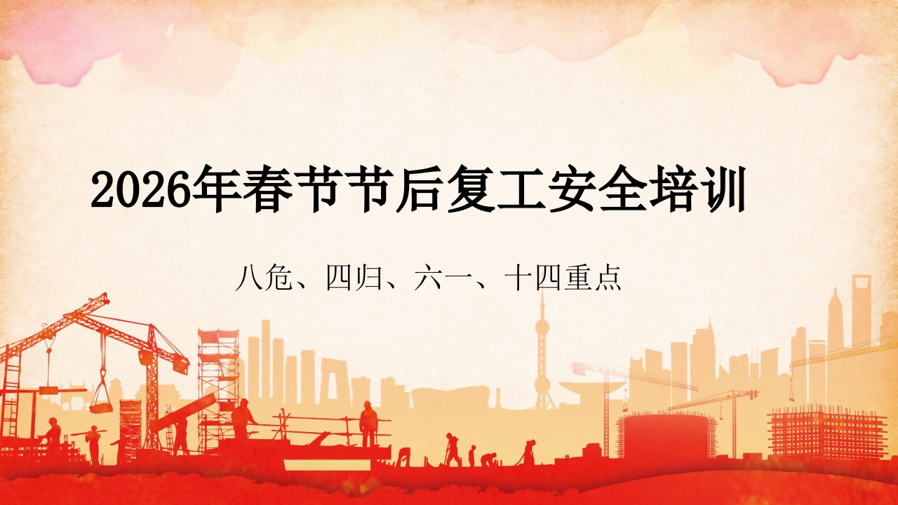 2026年春节节后复工安全培训八危、四归、六一、十四重点节后常见的八大危险目录二节后安全措施要做到四个归位三节后安全措施要做到六个一四节后十四项检查重点