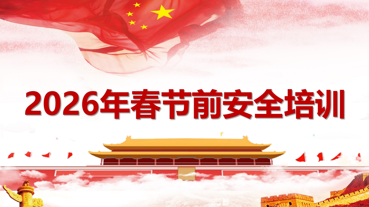 2026年春节前安全培训前言为了确保大家能够渡过愉快、健康、安全的假期,减少节假日前及节假日安全事故的发生,在公司领导的指示下,特组织开展此次培训川活动,再给大家提提醒、敲敲钟、紧紧弦。