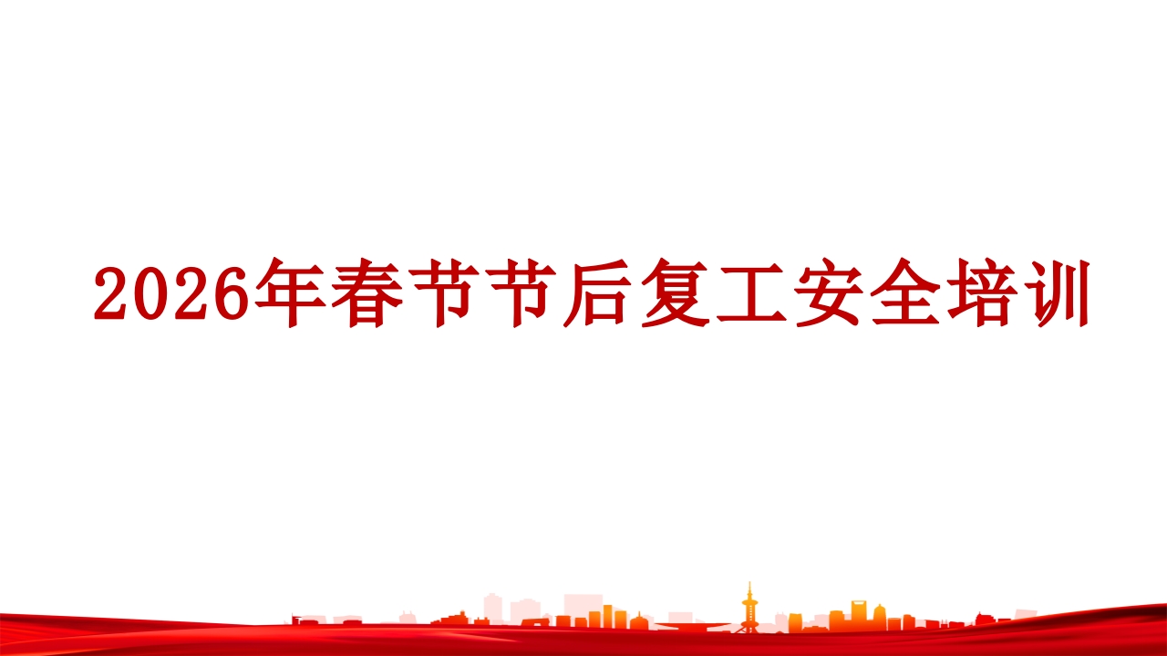 2026年春节节后复工安全培训目录第1章节后安全培训的重要性CONTENTS第2章节后复工安全管控关键点第3章节后复工安全意识提升第4章节后复工安全知识学习