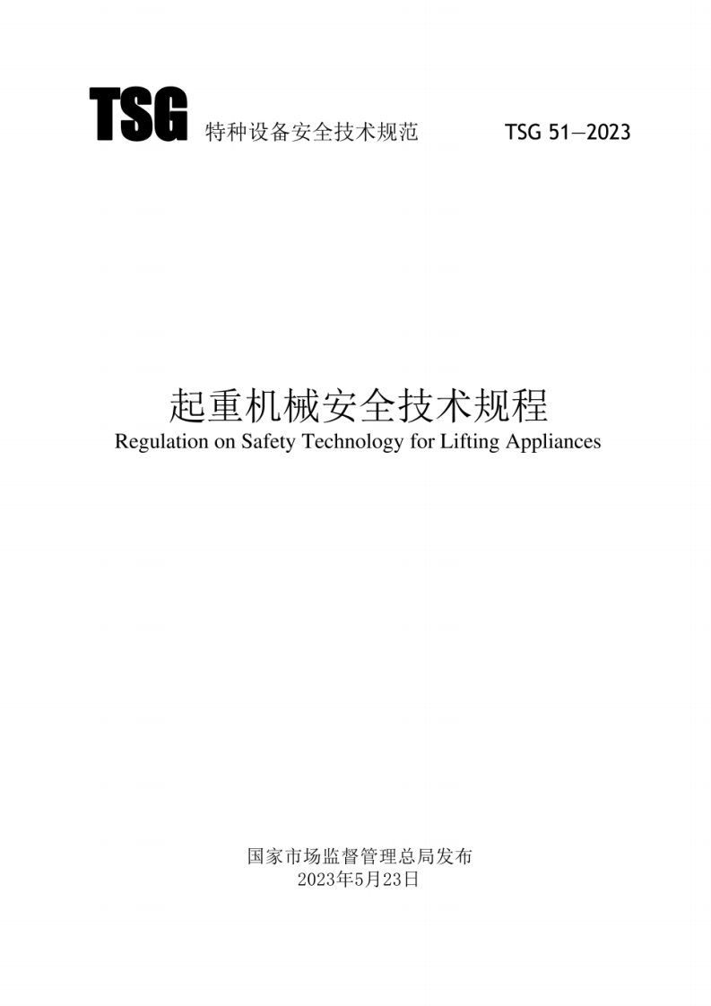 TSG特种设备安全技术规范TSG51-2023起重机械安全技术规程Regulation on Safety Technology for Lifting Appliances国家市场监督管理总局发布2023年5月23日